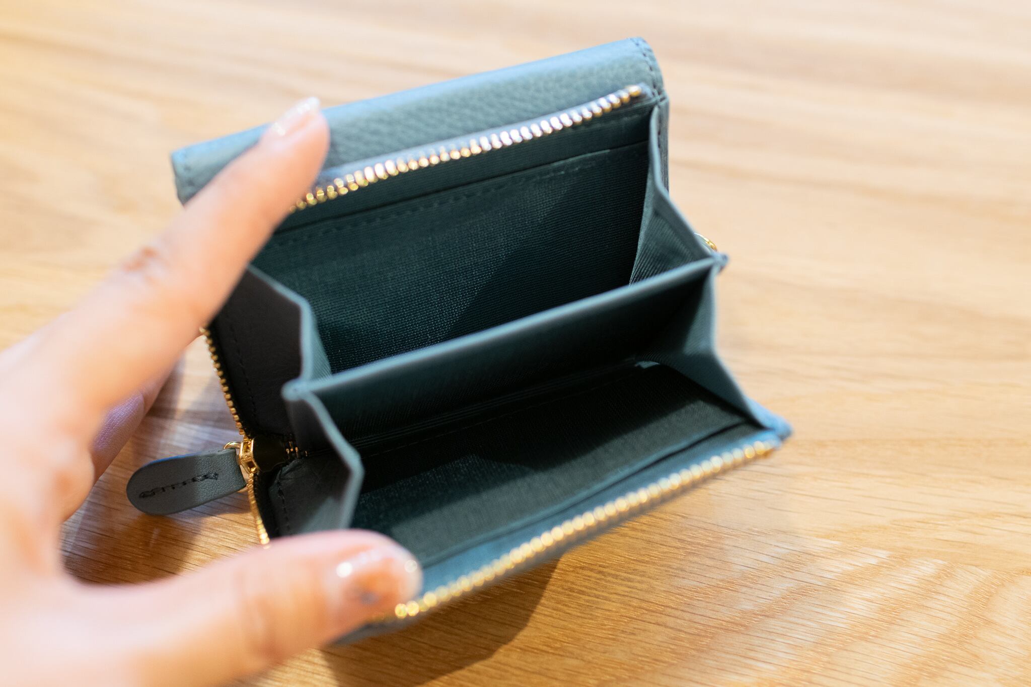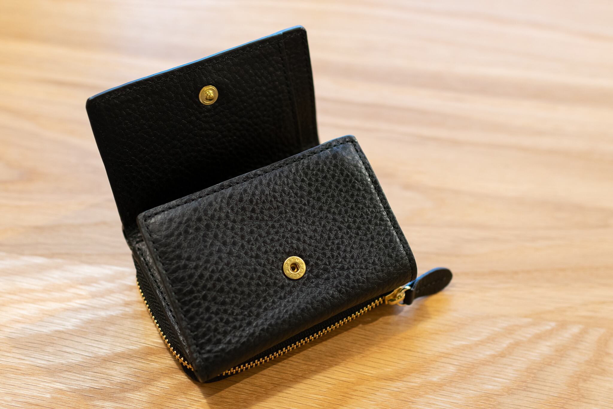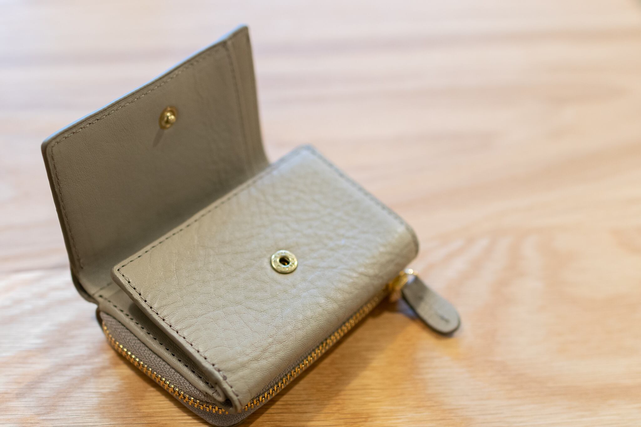 良質なイタリア製の本革「アリゾナ」を使用したコンパクトな三つ折り財布。