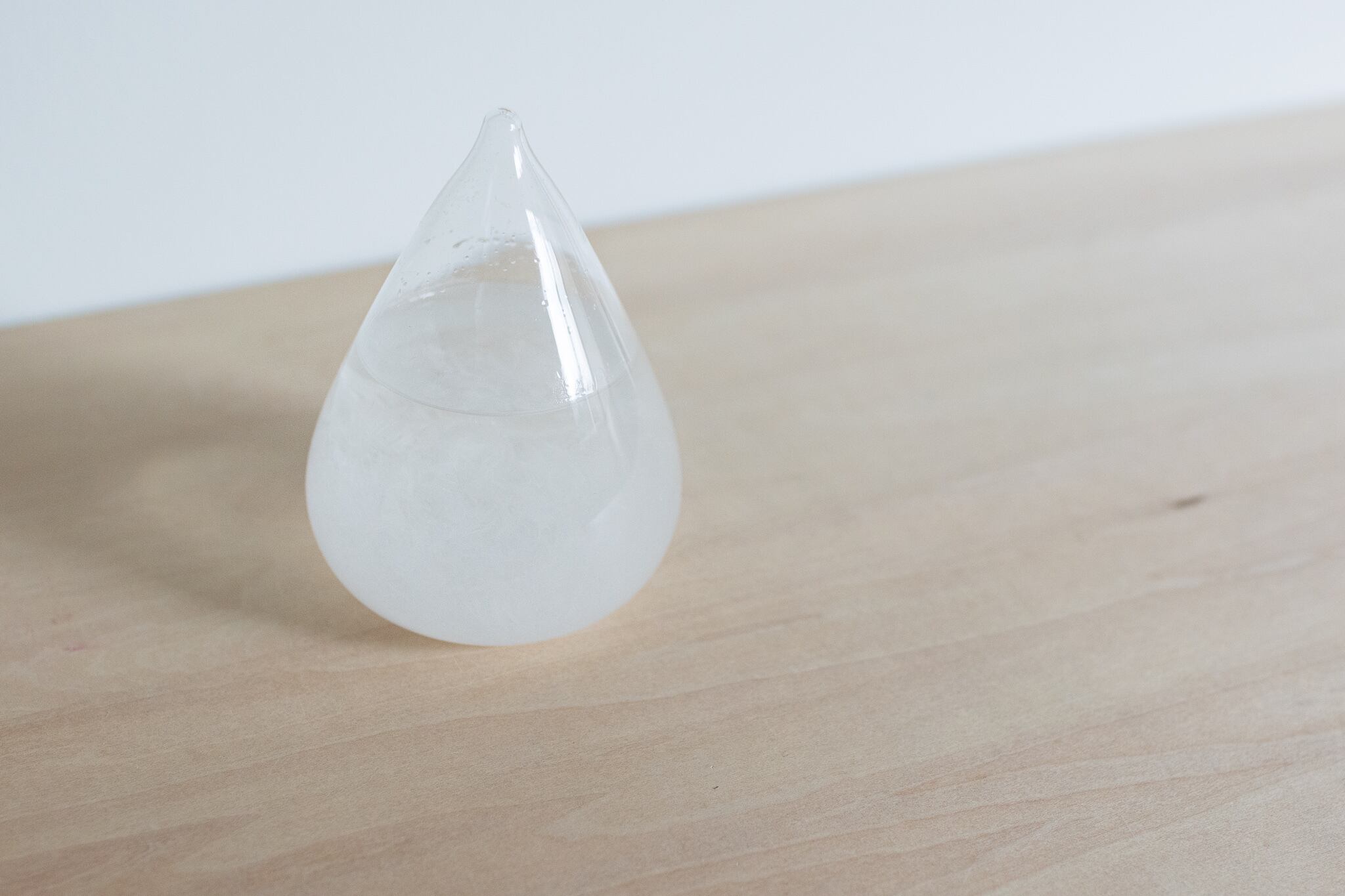 気温や気圧の変化によって、液体内の結晶が変化していくガラスオブジェ。