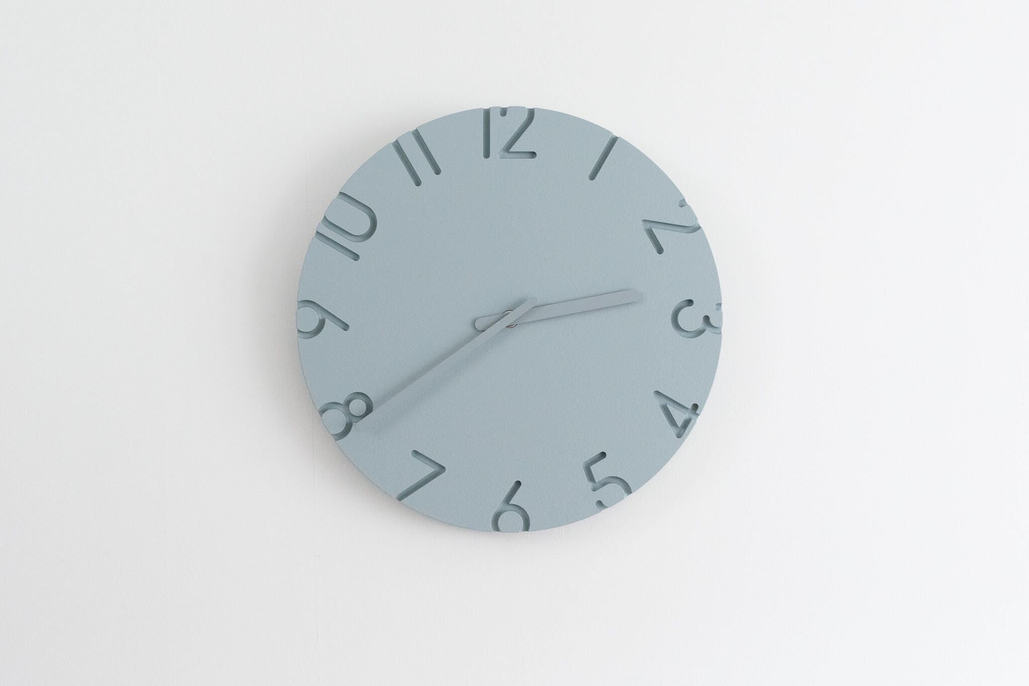 文字盤に色をつけることによって、彫り込んだ文字が色のグラデーションのようにも見え、 ミニマムなフォルムながらも空間に色のアクセントを与えます。