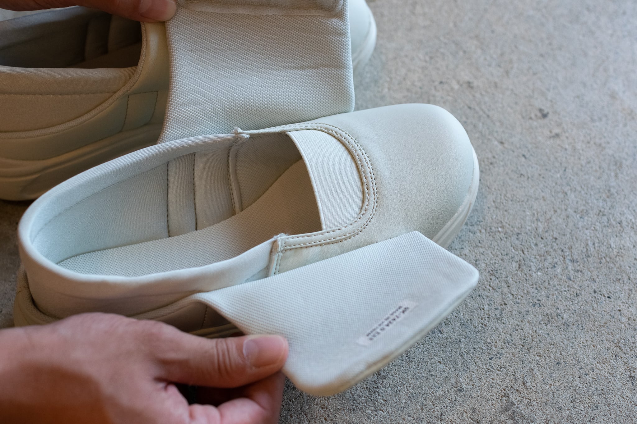踏んでも履ける踵のストレッチ素材や、立ち仕事を支える低反発インソールを採用し、ゆとりのあるリラックス感のある履き心地です。